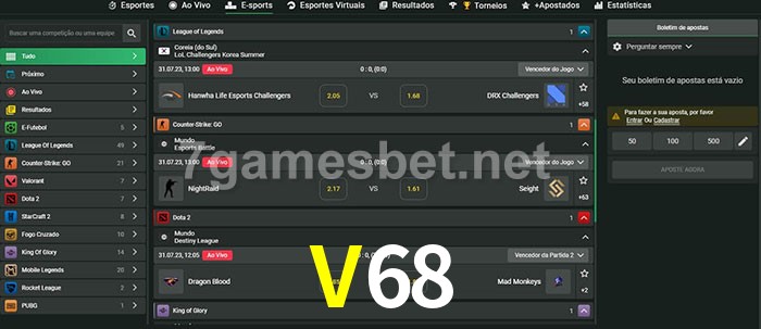 A aposta V68 oferece aos jogadores a experiência mais conveniente de apostas em eSports!